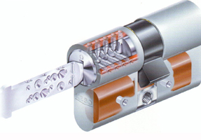 Durch diese eingebaute Mechanik auf beiden Hochkantseiten des Schlüssels wird die Kopiersicherheit der Schlüssel wesentlich erhöht. Der mit der Omega Funktion ausgerüstete Schlüssel kann Schliesszylinder mit oder ohne Omega-Technik öffnen.